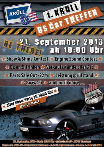 (CIS-intern) – Das Autohaus Krüll in der Ruhrstraße 63 im Hamburger Stadtteil Bahrenfeld richtet am Samstag, dem 21. September ab 10 Uhr sein erstes eigenes US-Car-Treffen aus. Zum umfangreichen Programm, das die traditionsreiche Firma zur Meeting-Premiere geplant hat, gehören ein Show-&-Shine- und ein Engine-Sound-Contest, Car Wash und vieles mehr. Wer möchte, der kann bei der Gelegenheit auch die tatsächliche Leistung seines Autos auf einem Prüfstand dokumentieren lassen.