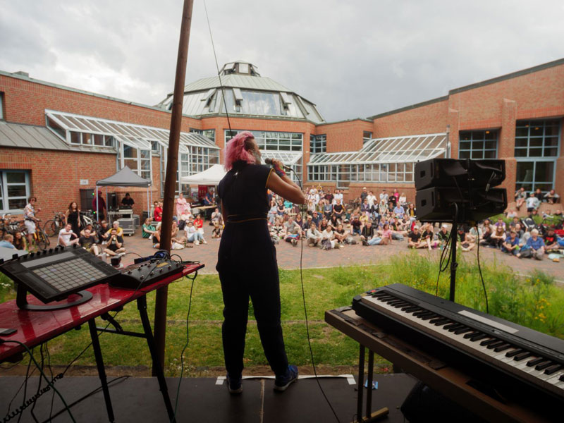 Auch wenn inzwischen Besucher:innen aus dem gesamten Bundesgebiet anreisen, ist und bleibt 48h Wilhelmsburg ein Nachbarschaftsfestival. Es zeichnet ein musikalisches Bild der Stadtteile Wilhelmsburg und Veddel. Welche Bands auftreten dürfen, entscheidet nicht deren Virtuosität oder ihre Bekanntheit, sondern ihr Bezug zu den Elbinseln. Die Künstler:innen sind in den Stadtteilen aufgewachsen, leben oder arbeiten hier.
