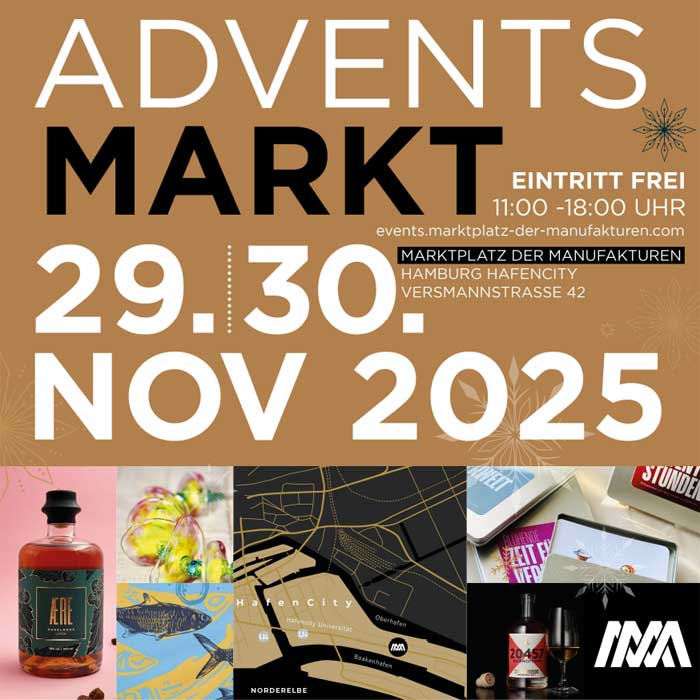 (CIS-intern) – Wenn am ersten Adventswochenende in der HafenCity die Weihnachtsbeleuchtung erstrahlt, öffnet der Marktplatz der Manufakturen am 29. und 30. November seine Türen – für ein Wochenende voller Charme, Kreativität und besonderer Entdeckungen. Über 50 Aussteller:innen präsentieren handgefertigte Kostbarkeiten: feine Mode, funkelnden Schmuck, natürliche Kosmetik, stilvolle Wohnaccessoires und liebevoll gestaltete Weihnachtsdekoration. Jedes Stück steht für echtes Handwerk, Qualität und Liebe zum Detail.