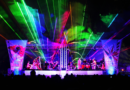 Bei der Show „Colours of Nature – Klangfarben der Natur“ verbindet sich Klassisches mit Modernem. Solisten, die mit Harfe, Violine, Klavier sowie mit modernen elektronischen Keyboardsounds, im zeitgenössischen Stil zu den schönsten Melodien von Tschaikowski, Translateur und aus Antonio Vivaldis „Vier Jahreszeiten“das Publikum begeistern. Jede Jahreszeit wird mit einem pompösen Feuerwerk aufwendig in Szene gesetzt. Dabei harmonieren Großbildprojektionen, Licht- und Laseranimationen in einem spektakulären Schauspiel, welches erstmalig in dieser Dimension dargeboten wird. Geschichte und Gegenwart, Klassische Musik, Jazz und Pop begegnen sich auf eindrucksvolle Weise, inszeniert durch das Kammerorchester in einer einzigartigen Multimediashow.
